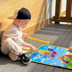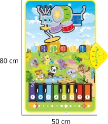 Denne farverige WOOPIE musikmåtte understøtter finmotorik, auditiv perception og kreativitet. Med to spilleflader kan børn vælge mellem klaverklaviatur og slagtøjsinstrumenter, udforske toner, rytmer og komponere egne melodier.