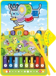 Skift mellem melodier og rytmer. Den ene side klaviatur, den anden et percussion-sæt – sjov, der udvikler musikalsk sans og koordination.