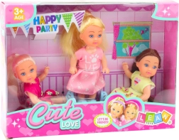 Dette sæt med tre mini dukker er ideelt til kreativ leg og udvikling af børns fantasi. Dukkerne er designet med fokus på detaljer fra unikke hårfarver, gennem dekorative kjoler, til perfekt matchede blå sko. De er klar til fødselsdagsfesten, som inspirerer børn til rollespil og sjov med venner.