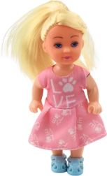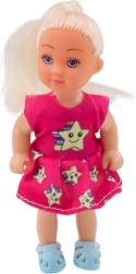 - Dukke med lyseblondt hår i mørke lyserøde kjoler med stjerner