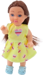 - Dukke med brunt hår i gule kjoler med hjerter