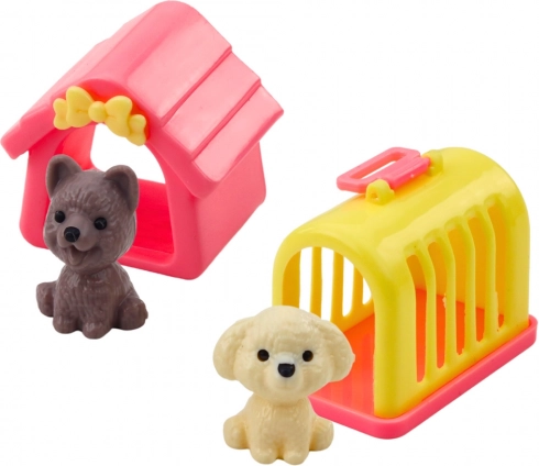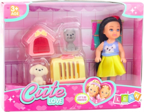Mini-dukke med hunde og tilbehør er et fantastisk legesæt, som vil begejstre hvert barn, der kan lide dyr. Sættet indeholder en dukke på 12 cm, klædt i en farverig kjole med print af en sød hund, samt to hunde – den ene har sit farverige hundehus, og den anden rejser i en gul-rosa transportkasse. Sættet giver barnet mange muligheder for at skabe historier og situationer fra livet som lille hundeejer.