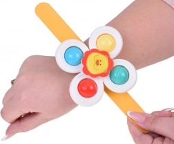 Gør børnenes badetid sjovere med farverige spinner-legetøj med glade motiver af en lille løve, en svamp og en dinosaur. Spinneren kan nemt fastgøres på forskellige overflader, så barnet er underholdt både ved måltider og under bilturen.
