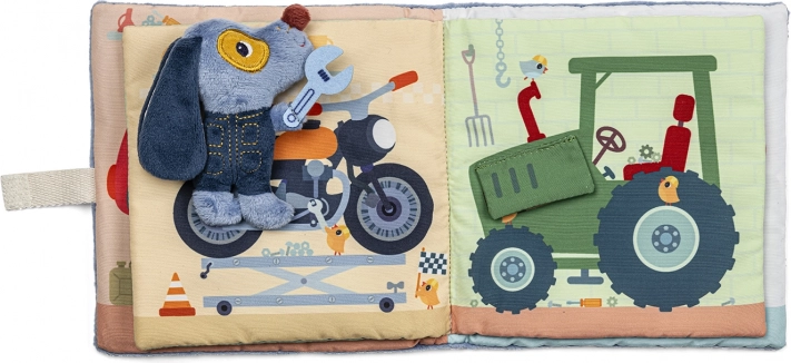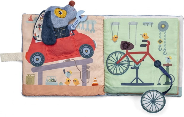 Oplev hundehvalpen Jules’ verden i hans garage gennem denne interaktive tekstilbog. Hver side giver barnet nye impulser til at udvikle sine færdigheder: