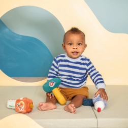 Den første legetøj til små handymænd! Denne rangle i form af en motorsav er ideel til udvikling af sanserne og støtte fantasien hos børn fra 3 måneder.