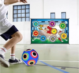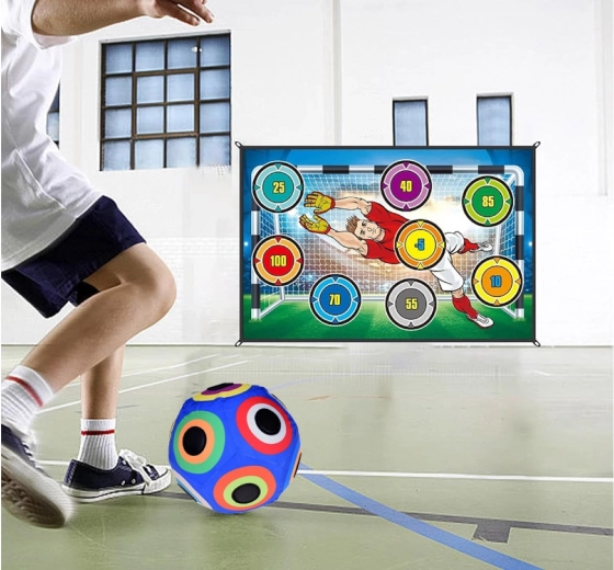 Sættet til fodbold med målskive er designet til at være sikkert og børnevenligt. Det er lavet af holdbare, ikke-giftige materialer, som er bløde og trygge. Den farverige og attraktive målskive fanger børns opmærksomhed og motiverer dem til at øve. Den lysende bold bringer ekstra overraskelse til legen; den lyser ved kast, hvilket øger sjov og engagement. Legen er nem at bruge; børn kan selv forsøge at ramme bolden gennem hullerne og udvikle præcision og koncentration. Derudover understøtter den motorisk udvikling; kast, sigtning og gribning hjælper med at træne finmotorik og hånd-øje-koordination.