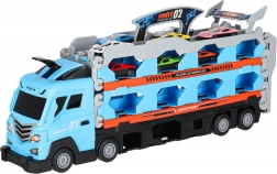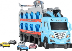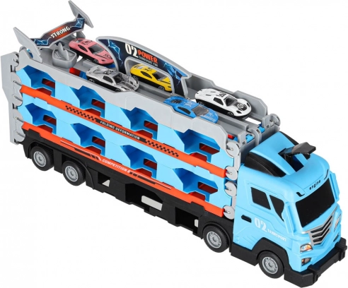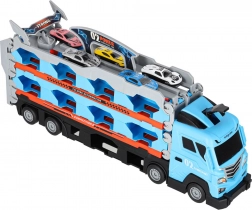 Sættet indeholder en indbygget affyringsrampe til hurtige starter og 8 forskellige sportsbiler. Når legen er slut, kan alle bilerne nemt lægges tilbage i rummene i lastbilen – sættet byder dermed på både sjov og praktisk opbevaring.
