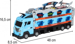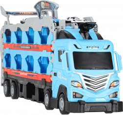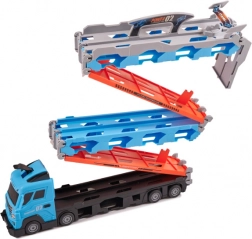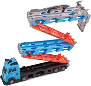 Dette multifunktionssæt kombinerer en biltransporter og en lang racerbane i ét. Når det foldes ud, bliver lastbilen til en dobbelt bane på 210 cm, hvor børn kan arrangere spændende dueller og måle rekorder.