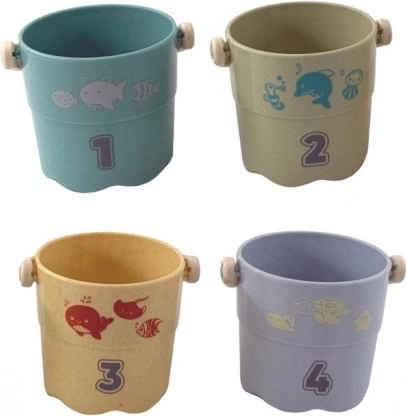 Et sødt sæt vandspande vil glæde enhver baby og tumling. Velegnet til badekar, strand og sandkasse. Understøtter vandleg, udvikling af finmotorik samt læring af farver og tal. Glade farver, nem håndtering og alsidig anvendelse gør dette sæt til en favorit til den daglige badetid.