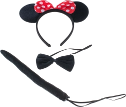 Dette komplette mussekostume-sæt er ideelt til fastelavn, Halloween, skoleoptrædener og leg derhjemme. De ikoniske ører med rød prikket sløjfe matches af en sort butterfly og hale, så udklædningen er klar på få sekunder.