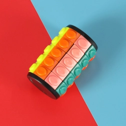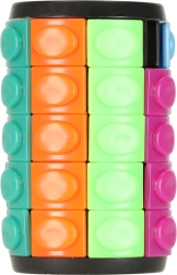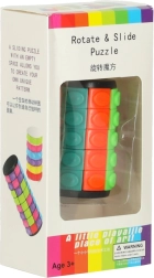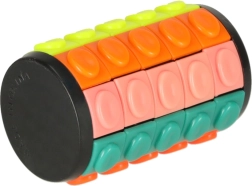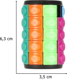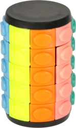Den roterende cylinder med fem ringe er et vanedannende logisk spil for både børn og voksne. Princippet er enkelt: I hver række er der én ledig plads, som gør det muligt at skubbe og dreje de farvede brikker og sætte dem i den rigtige rækkefølge. Det ser let ud ved første øjekast, men giver timevis af sjov!
