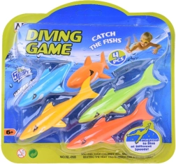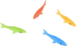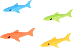 Sættet indeholder 4 farverige hajer med en længde på ca. 12 cm og en bredde på 3 cm, lavet af blødt, dykkergummi. Disse legetøj er behagelige at røre ved uden skarpe kanter og helt sikre til leg i vandet, hvad enten det er i poolen, soppebassinet eller badekarret.
