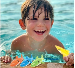 - Dykning efter hajer: Spred hajerne rundt i poolen eller soppebassinet. Når de synker til bunden, skal barnet finde dem, hvilket lærer dem at dykke og kontrollere deres åndedræt.