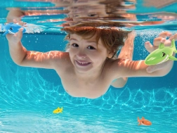 - Hurtig reaktion: Kast hajerne i forskellige retninger og opfordr barnet til straks at springe i vandet og fange dem. Denne aktivitet forbedrer reflekser og reaktionstid.