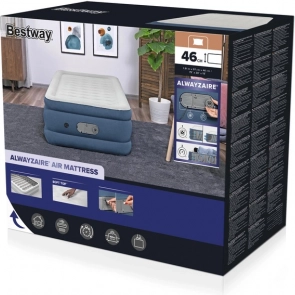 Enkeltmadras fra Bestway i AlwayzAire-kollektionen tilbyder maksimal komfort og funktionalitet. Takket være den innovative AlwayzAire-pumpe kontrolleres lufttrykket automatisk hele natten.