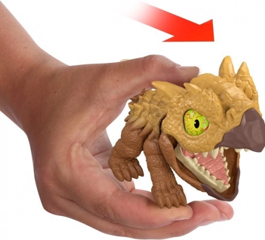 Opdag den unikke kollektion Jurassic World Mighty Little Biters, som omfatter berømte arter som T. rex, Velociraptor og Ankylosaurus. Hver dinosaurus ser nuttet ud, men bliver levende og viser sit atypiske, aggressive udtryk, når du trykker på hovedet.