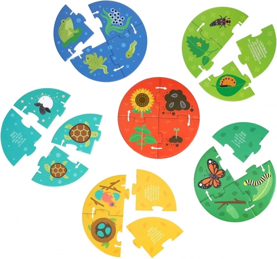 Puslespil Opdagerens Livscyklus hjælper med at vække interessen for naturens verden. Dette sæt indeholder seks små puslespil, der illustrerer livsfaserne for mariehøne, sommerfugl, skildpadde, frø, blomst og fugl. Produktet bidrager til udviklingen af hånd-øje-koordination, kognitiv udvikling og problemløsningsfærdigheder.