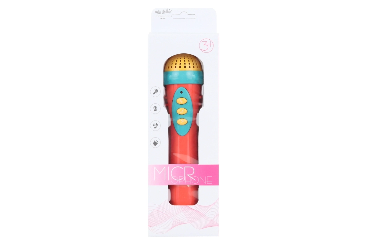 Denne letbetjente batteridrevne mikrofon bringer glæde og underholdning ind på børneværelset. Med mulighed for at afspille op til tre melodier vil dine børn hurtigt forelske sig i at synge og udtrykke sig kreativt.