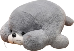 Plyssælen er fremstillet af materialer i høj kvalitet i en blid grå farve, der minder om en realistisk sæl med en venlig, let flad tryneform. Dens afrundede krop, markante luffer og søde ansigt med næse og knurhår vækker straks tillid og lysten til at kramme den.