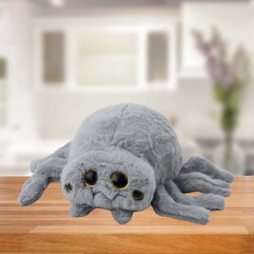 Plysedderkoppen er en original og meget effektfuld legetøj, som helt sikkert vil fange interessen hos børn, der kan lide usædvanlige plysdyr, insekter og naturens spændende detaljer. Den er lavet af blød, fløjlsagtig plys i en dyb grå farve, hvilket giver den et let mystisk, men samtidig venligt og sjovt udtryk. Legetøjet udmærker sig ved omhyggelige detaljer – den har flere par glinsende øjne i forskellige størrelser, bløde, afrundede ben og et nænsomt broderet ansigt med et smil, hvilket gør den usædvanligt nuttet og ikke skræmmende, selv for yngre børn.