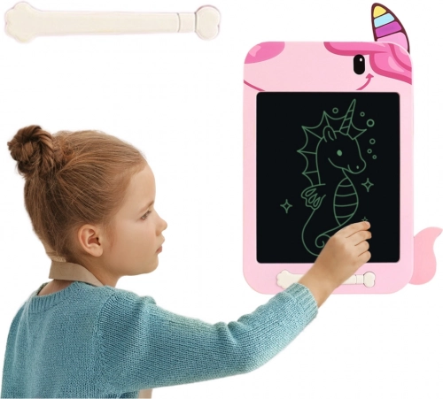 Znikopis i form af en sød enhjørning er ideel til børn, der kan lide at tegne og skrive. Den følsomme LCD-skærm gør det nemt at tegne og skrive uden behov for papir eller farver. Børn kan fokusere på deres skabelse, mens de lærer præcision og tålmodighed. Den indbyggede knap til at slette hele skærmen gør det muligt at starte en ny leg med det samme, hvilket gør denne znikopis til en praktisk og miljøvenlig løsning.
