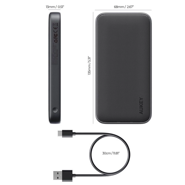 Aukey Spark Go er en innovativ løsning til alle dine opladningsbehov. Powerbanken er udstyret med USB-C-teknologi til hurtig opladning, som giver 5 V/3 A output kompatibel med iPhone, Android og andre USB-C-drevne enheder.