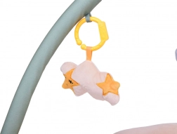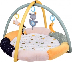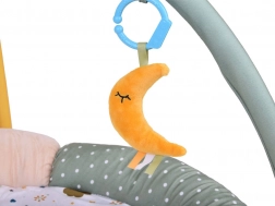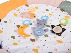 En blød læringsmåtte til baby i dæmpede farver, der giver komfort og underholdning i ét! Denne måtte er det ideelle sted til hverdagens afslapning og sensorisk udvikling af dit barn. Med sky- og stjernemotiver skaber den et beroligende og støttende miljø.