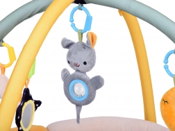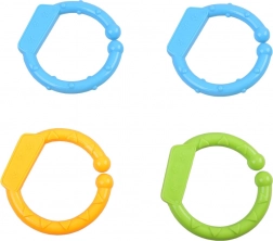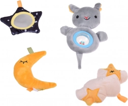 Sættet indeholder to bøjler, der kan bruges til at hænge fire søde legetøj på, specielt designet til at udvikle visuelle, taktile og auditive færdigheder. Legetøjet giver mulighed for at iagttage, gribe og stimulerer barnets sanser positivt: