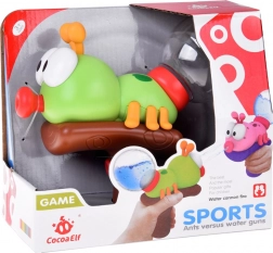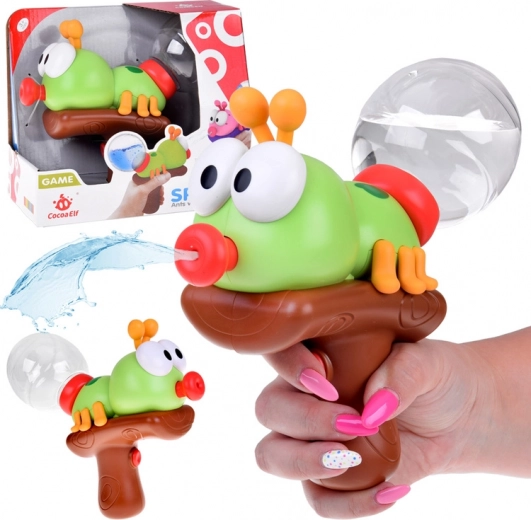 Vandpistol Robåček tiltrækker opmærksomhed med sit eventyrlige udseende – den har store øjne, søde antenner og en åben mund, som sprøjter vand, når aftrækkeren trykkes. Legetøjet har et behageligt, farverigt håndtag, som fungerer som greb og aftrækker.