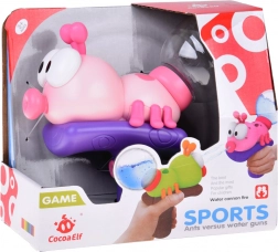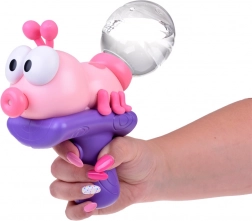 Vandpistolen fanger opmærksomheden med sit eventyrlige udseende – den sjove lille bille har store øjne, nuttede følehorn og en åben mund, hvorfra vand sprøjter ud, når man trykker på knappen. Hele konstruktionen er monteret på et behageligt, farverigt håndtag, der fungerer både som greb og aftrækker til vandskydning.