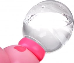 På bagsiden af legetøjet sidder en gennemsigtig, rund beholder til vand. Den gør det let at kontrollere mængden af væske og hurtigt at fylde op. For at fylde den skal du blot skrue låget af, fylde med vand og montere det igen.
