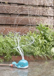 Den vandsprøjtende hval er lavet til sommerleg i frisk luft. Det innovative design bruger bioplast af hvedestrå, hvilket gør den let, robust og bæredygtig. Fremstillet af komposterbart biomateriale og 100% plantebaseret.