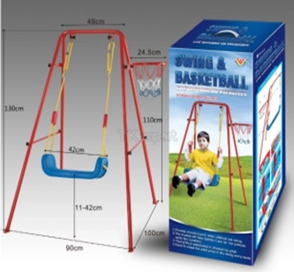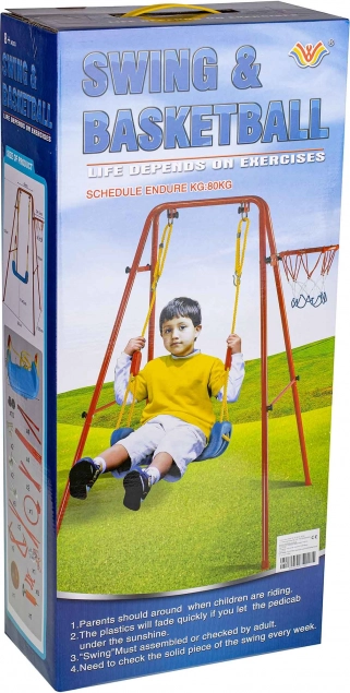Denne alsidige havegynge kombinerer populær gyngeleg med basketballsjov. Det stabile metalstel med rørdiameter på ca. 2,5 cm og stærkt reb bærer det brede plastiksæde (ca. 43 × 25,5 cm) for komfortabel og sikker brug. Der medfølger en basketballkurv, som nemt kan fastgøres på stellet, samt minibold og pumpe til spil med det samme.