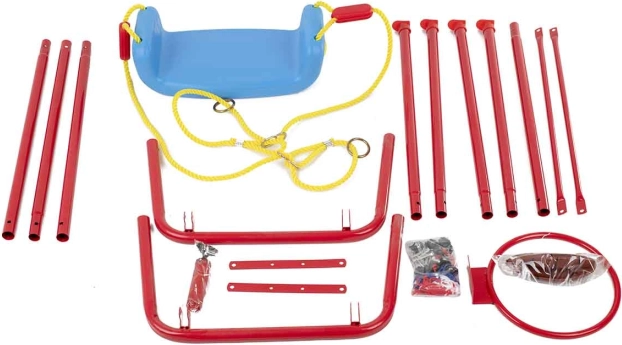 Sættet er ideelt til udendørs brug i haven og understøtter grovmotorik, koordination og sund bevægelse for børn. Takket være den enkle montering får du det hurtigt klar til brug. Klare, mættede farver indbyder til leg, og gyngen klarer en belastning på op til 80 kg, så både mindre og større børn kan få glæde af den.