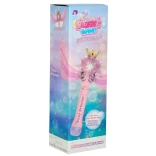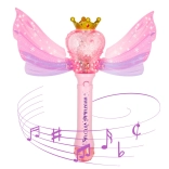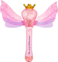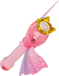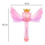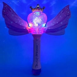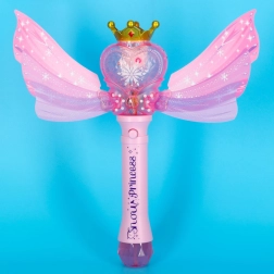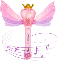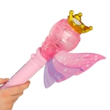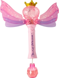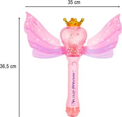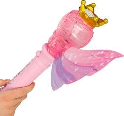 Maskinen til sæbebobler, der er formet som en tryllestav, gør boblesprøjtning til leg! Et enkelt tryk på en knap, og maskinen begynder at udsende mængder af små bobler på få sekunder.