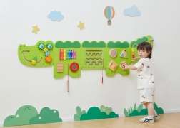 Denne store vægmonterede aktivitetstavle i form af en glad krokodille er opdelt i flere paneler, der indbyder børn til at udforske. De farverige elementer vækker nysgerrighed, stimulerer sanserne og fremmer selvstændig leg. Den solide trækonstruktion med glatte kanter er sikker og holdbar til daglig brug.