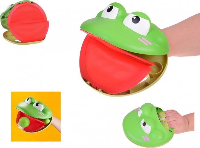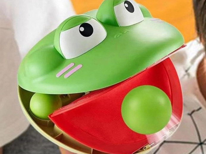 - Læg en bold i frøens mund, som om den ligger på tungen.