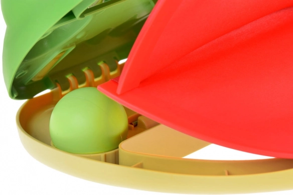- På siden af katapulten er der en hvid lynlås – skub den for at åbne frøens mund og indsætte bolden.