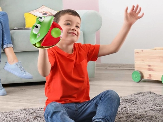 Sættet indeholder to smart formede katapulter, der nemt tilpasses din håndstørrelse takket være justerbare velcroremme. Hver katapult er designet som en sød frø, der med sin konstruktion gør den let at styre.
