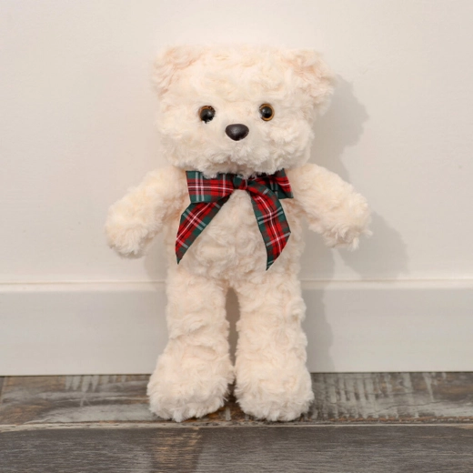 Den dekorative sløjfe i klassisk skotsk tern er en elegant detalje, der giver bamsen et festligt og gavevenligt udtryk. Bamsen har en stabil, stående positur og egner sig perfekt som legekammerat, puttemakker til natten eller som et dekorativt element på børneværelset.