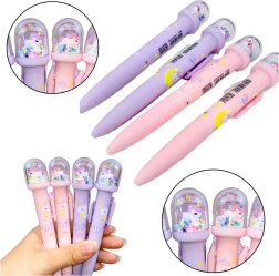 Den søde kuglepen er udstyret med en figur placeret i en gennemsigtig kuppel med flydende stjerner, glimmer og andre dekorative detaljer. Det skaber et unikt design, der fanger enhver lille kreatørs opmærksomhed.