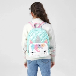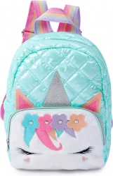 Modellen er fremstillet af et slidstærkt og samtidig let materiale, der tåler daglig brug. På forsiden findes en blød applikation med enhjørningemotiv, inklusive fremhævede ører og horn, hvilket giver et unikt udtryk. Rygsækken har et rummeligt hovedrum, en mindre indvendig lomme og en ekstra udvendig lynlåslomme.