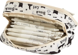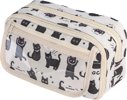 Penalhuset med et sjovt motiv af sorte katte har et hovedrum med god plads og ekstra indvendige skillevægge, som gør det nemt at organisere alle nødvendige skoleartikler.