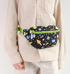 Denne mørkeblå fanny pack med rumprint giver ikke kun glæde, men tilføjer også masser af funktionalitet. Med et tilpas stort frontrum til pung og mobiltelefon samt en baglomme med lynlås til små værdigenstande er denne taske ideel til hverdagens eventyr.
