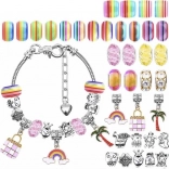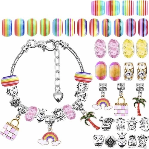 Kreativt sæt til fremstilling af smykker og armbånd for børn tilbyder mange farverige perler og vedhæng i forskellige former, der gør det muligt at skabe smukke armbånd og halskæder.