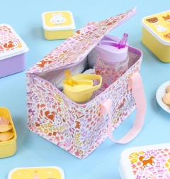 Denne stilfulde køletaske med motiv af en blomsterhave er ikke kun et smukt tilbehør, men også en funktionel hjælper. Dens volumen og plads gør det let at opbevare forskellige typer mad og drikke.