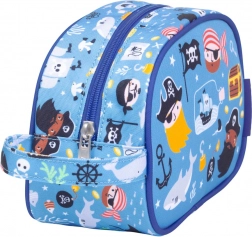 Denne blå toilettaske tilbyder alt, hvad et barn har brug for på rejser. Den har et rummeligt rum med plads til alle nødvendige hygiejneartikler som shampoo, sæbe, tandbørste og tandpasta. Med det praktiske håndtag er det nemt at bære og hænge tasken.