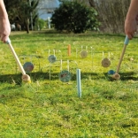 Buerne stikkes nemt i jorden, og takket være de aftagelige skafter på køllerne og den praktiske stofpose kan sættet opbevares og transporteres bekvemt. Produkterne i Garden Buddies-serien, som kroketten hører til, tilbyder masser af sjov og udvikling af motoriske færdigheder.