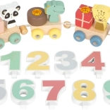 Lokomotivet rummer cifre fra 1 til 9 i blide pastelfarver. Børn øver talrække og farver på en sjov og naturlig måde.