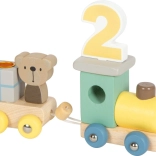 Det træfødselsdagstog fra SMALL FOOT glæder både børn og forældre. Seks farvede vogne med dyr kan nemt kobles sammen og skilles ad ved hjælp af kroge og øjer. I lokomotivet kan man sætte cifre fra 1 til 9, så hver fest kan tilpasses den aktuelle fødselsdag. Naturtræ i moderne farver gør det til både en smuk dekoration og en robust legeting.